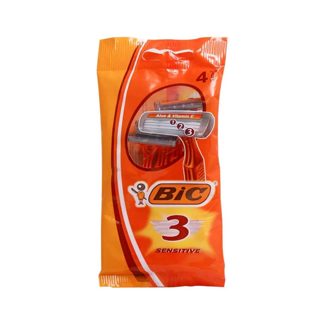 تیغ اصلاح 3 لبه مردانه بیک مدل Sensitive تعداد 4 عدد