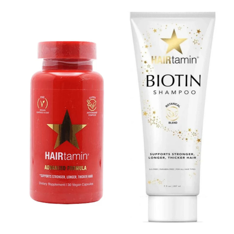 پک «شامپو هـــی-رت-امین ضد ریزش و تقویت کنند مناسب انواع مو» و«قرص تقویت کننده مو هــــیر-ت-ام-ین»