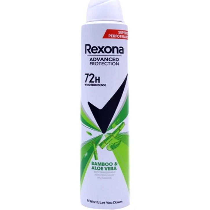 اسپری بدن ضد تعریق رکسونا (اصل)72H ساعته ضد باکتری و بو Bamboo & Aloe Vera Rexona حجم200 میل ا Bamboo & Aloe Vera Rexona anti-perspirant body spray 72 hours anti-bacterial and odor 200 ml