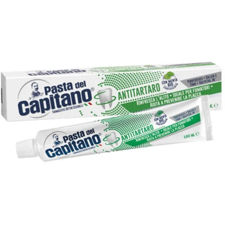 خمیر دندان ضد جرم پاستا دل کاپیتانو دارای فرمول منحصر به فردی است که حاوی سولفات روی (Sulfetal ZN) می باشد. مریم گلی و آویشن موجود در محصول باعث جلوگیری از تشکیل جرم بر روی سطح دندان شده و منجر به خوشبو شدن دهان می شود. همچنین دارای نعنای طبیعی ارگانیک می باشد که برای افرادی که سیگار مصرف می کنند مناسب می باشد. این محصول فاقد روغن پارابون و تریکلوزان و سولفات سدیم می باشد.پاستا دل کاپیتانو ارائه دهنده محصولاتی است که از نظر تاثیر گذاری به صورت علمی مورد آزمایش قرار گرفته است. این برند ایتالیایی حاصل تجربه طولانی و اشتیاق داروسازی دکتر چیکارلی است که همیشه در حوزه ی مراقبت دهان و دندان عملکردی عالی داشته است