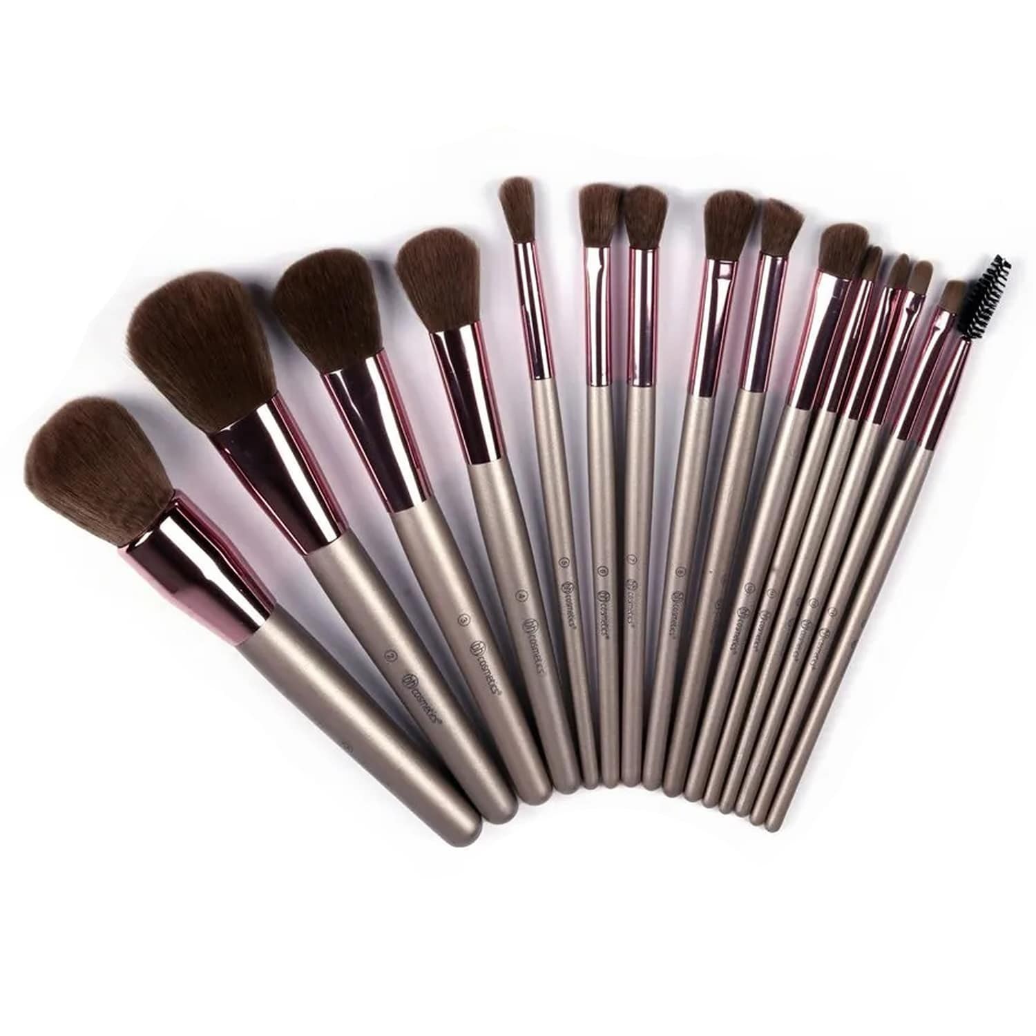 مجوعه 15 عددی برس آرایشی شامل تمامی براش های کاربردی جهت کانتورینگ، کانسیلر، برس گونه، برس چشم، برس ابرو و مژه، براش فید و ….