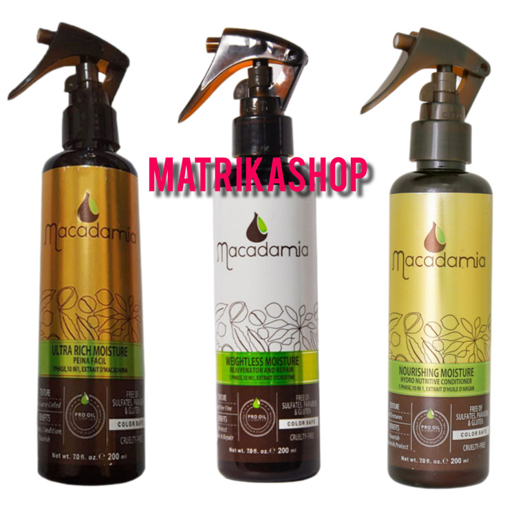 اسپری نرم کننده مو 10 کاره مناسب مو های آسیب دیده و خشک 200 میل ماکادمیا