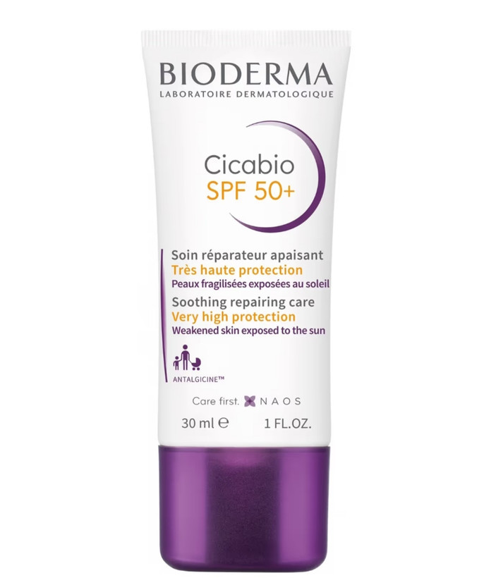 کرم ترمیم کننده و ضدآفتاب بایودرما Bioderma Cicabio SPF50 دارای فرمول ترمیم کننده اپیدرم به همراه محافظت کننده قوی با فیلترهای ضدآفتاب SPF50 برای جلوگیری از ایجاد لک و دو رنگ شدن پس از ترمیم پوست می باشد. کرم ترمیم کننده بایودرما احساس غیر راحت و خارش ناحیه اطراف زخم و آسیب دیدگی پوست را کاهش می دهد و حاوی ترکیبات فعال آنتی باکتریال زینک و مس برای تمیز کردن ناحیه خراش و آسیب دیدگی است. مواد موثر دیگر این فرمول شامل کمپلکس رزوراترول Resveratrol و عصاره گیاه سنتلا آسیاتیکا (سیکا) برای بازسازی اپیدرم، هیالورونیک اسید برای آبرسانی و فناوری ANTALGICINE برای تسکین پوست، کاهش قرمزی و احساس آسودگی می باشد.
