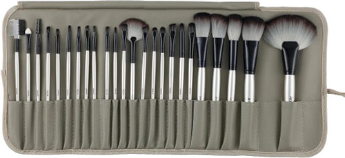 ست براش آرایش حرفه ای 24عددی دسته چوبی کیف چرم
